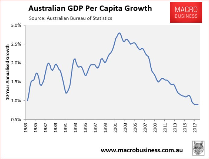 Since Australia's population growth was tripled in the Howard era, per capita GDP growth has plummeted: